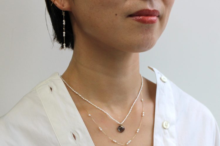 優しい丸みのあるケシパールとチェーンが柔らかく女性らしさを引き立ててくれます。