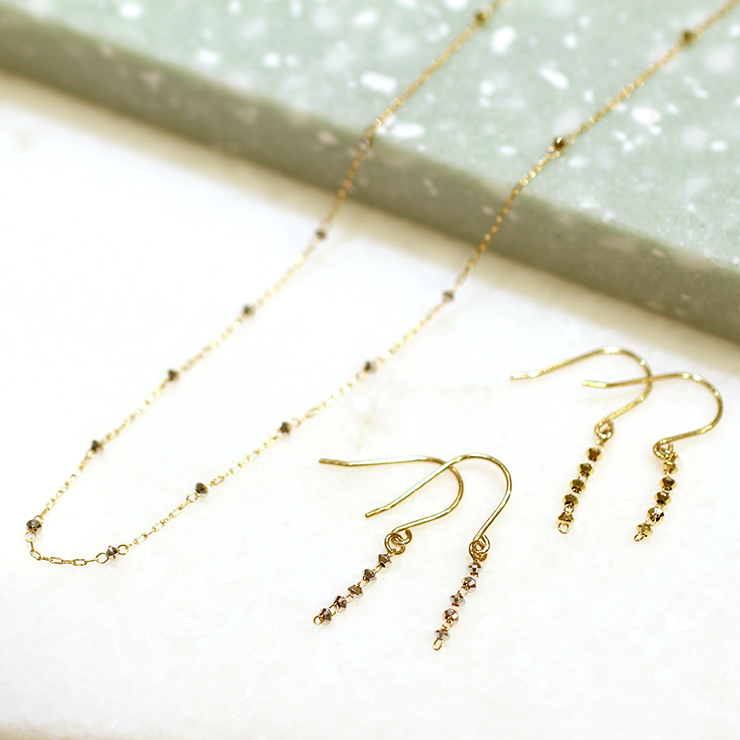 さて本日は、キラキラとした輝きが美しいシンプルなネックレスとピアスをご紹介します!