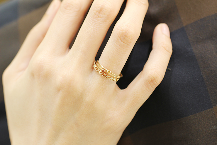 華奢なリングは、重ねづけしてもくどくなく手元に馴染みます。