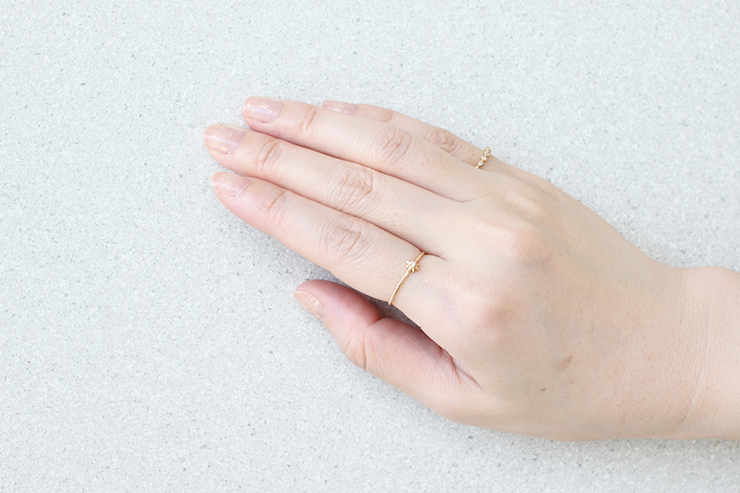 華奢でシンプルなリングなので重ね付けにもおすすめ