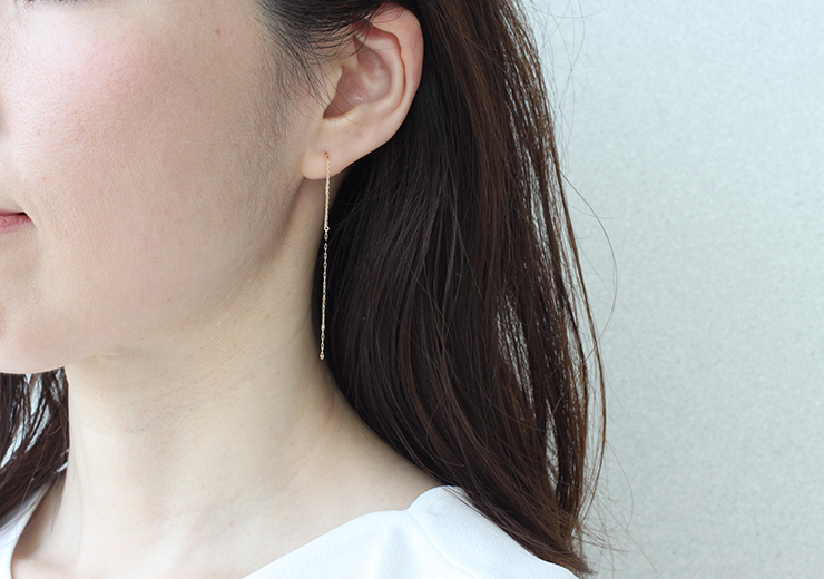 繊細なチェーンがさりげなくも美しい輝きのアメリカンピアス