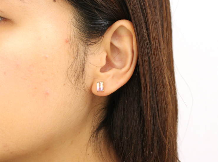■アメトリンバゲットカットポストピアスK18YG ¥38,000+税