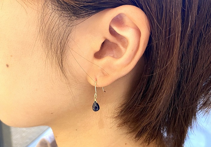 ■K10YG サファイア ブリオレットプレーン(S)ピアス ¥11,000(税込)